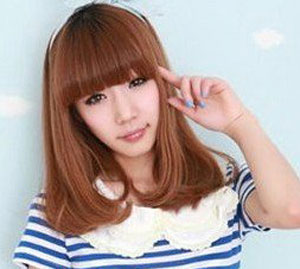 齐齐的刘海和那一头齐肩的中长发都是向内扣的,这样使得这位美眉的脸形看上去就像瓜子脸一样非常的完美,而且非常的可,那棕色的头发让她的皮肤白里透着红,可爱极了。