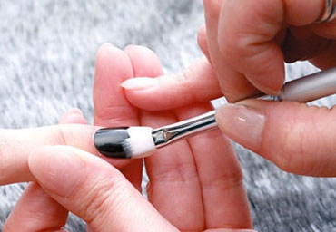 第二步:由于铆钉的底部是黑色,所以照灯后可涂上黑色甲油做底色。