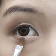 2、选择浅棕色在眼尾处后移式晕染,也属于过度色,增加眼影的层次感和凹陷。