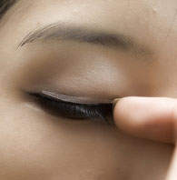 6、利用眼线膏化一条较细的眼线,增加黑度和修饰眼型,注意内眼角的细节,尽量化实化黑。