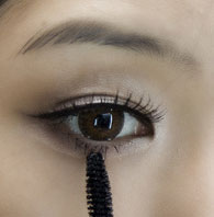 9、选择睫毛膏使真假睫毛结合,尽量选择偏干的睫毛膏(新睫毛膏或是偏湿的睫毛膏会导致睫毛分层脱开,适合在最后一层使用,做为拉长之效)。